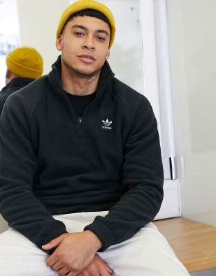 Adidas originals logo quarter online zip fleece in black