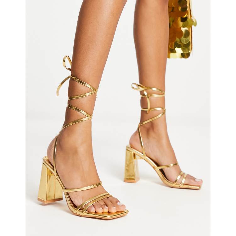 Sandalias doradas online atadas al tobillo