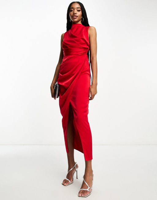 Vestido online rojo drapeado