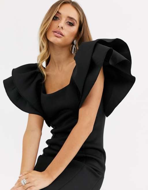 Vestido negro online con volantes