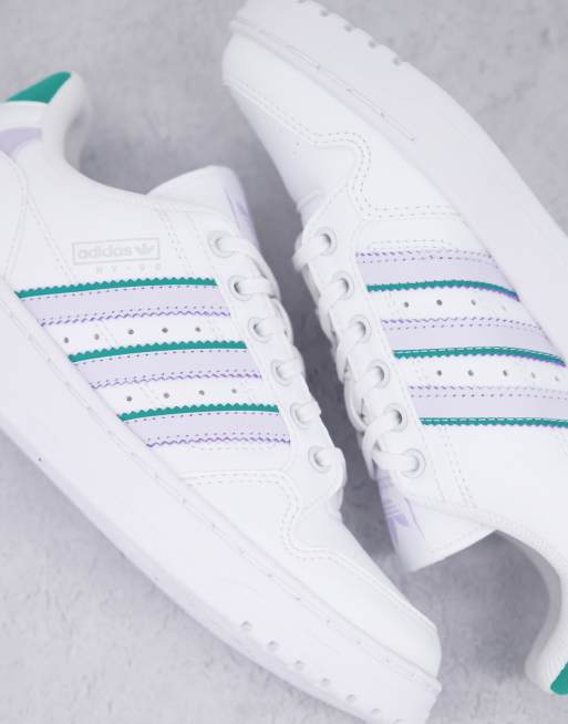 Adidas wit online met blauwe strepen