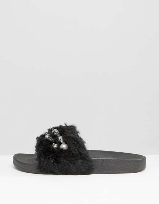 Product Item: Slippers met online bont zwart
