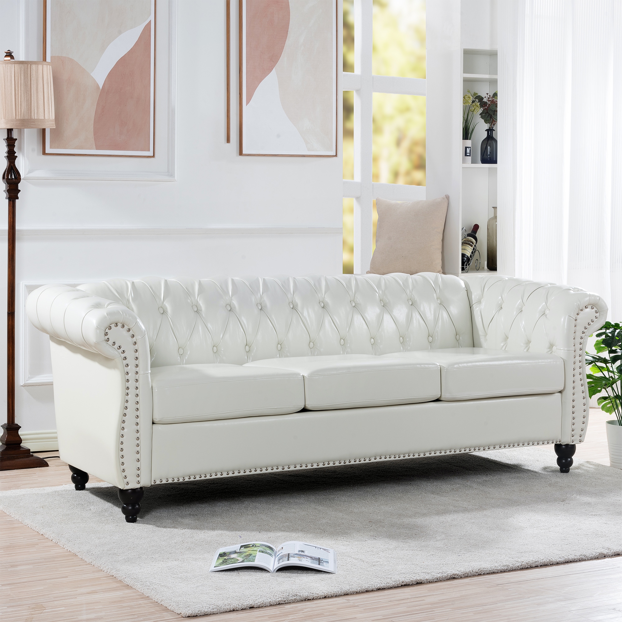 Product Item: White leather online three seater sofa
