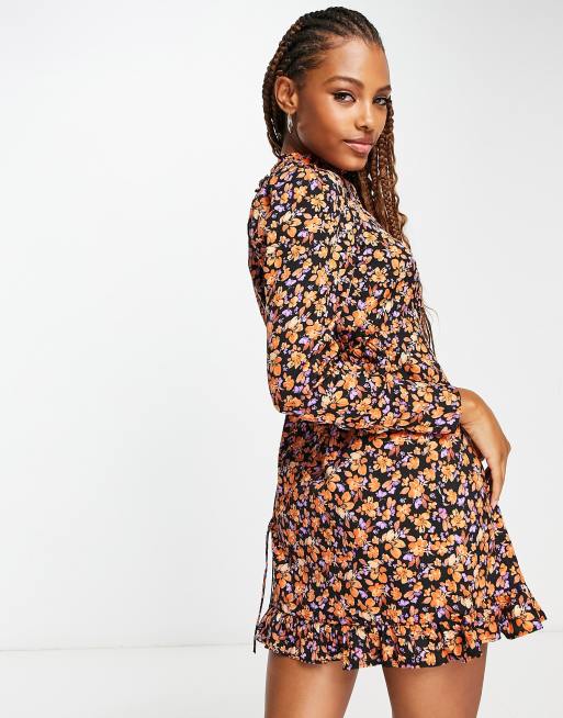 Product Item: Robe courte online manche longue fleurie