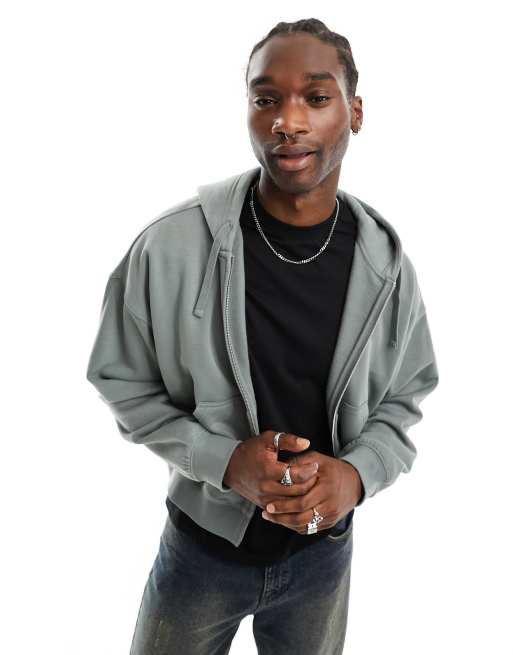 Denim zip online through hoodie