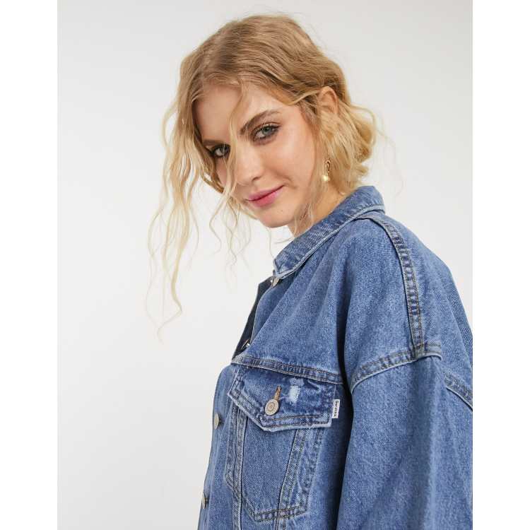 Veste en online jean longue bershka